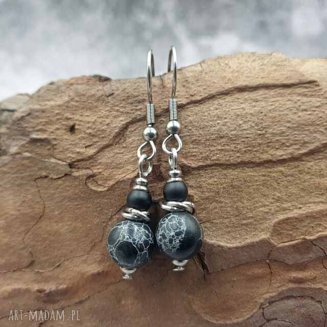 szybka wysyłkaKolczyki chainmaille - obsydian. Oryginalne kolczyki wykonane w stylu chainmaille, Materiały, stal szlachetna, obsydian, Rozmiar, rysy77,00 zł