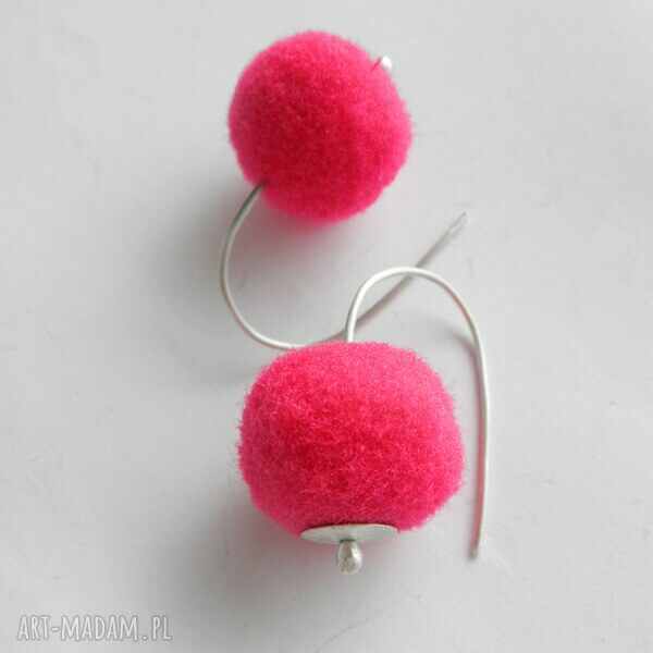 Oryginalność i prostota. OKRĄG - kształt doskonały. Kolekcję cechuje elegancja i prostota jak również ekstrawagancja i indywidualizm. Kolczyki wykonane są ze srebro, pompon ( 20 mm) Srebro - próby 0,925, zmatowione. Długość kolczyków - ok. 3,5 cm