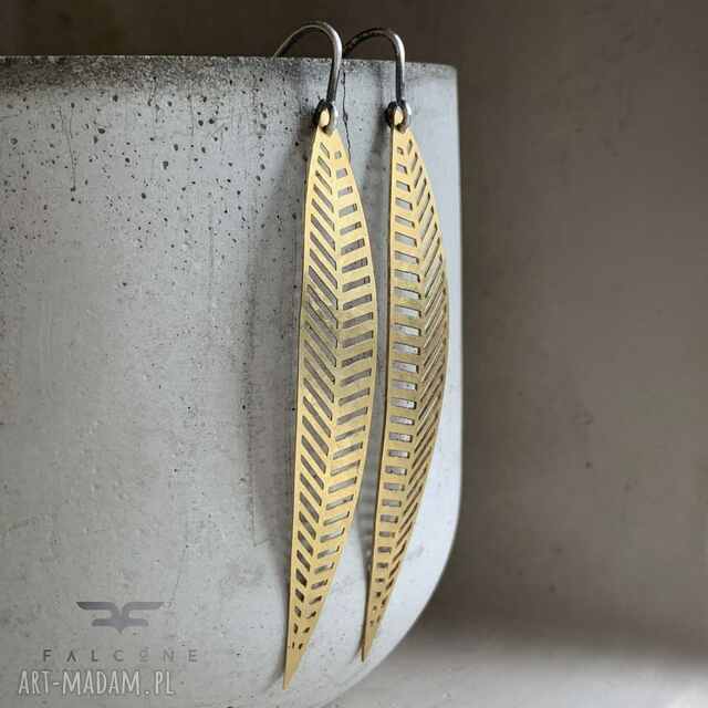 szybka wysyłkaKolczyki złote piórka. Kolczyki srebrne - bigle Kolczyki w formie piórek z mosiądzu w kolorze złota o fakturowanej, 1 cm159,00 zł