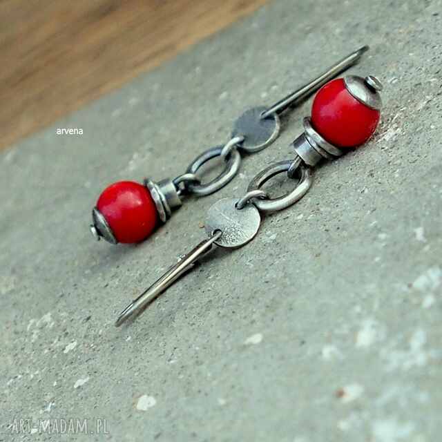 Kolczyki algiz z czerwonym koralem - srebro oksydowane. Chłodna powierzchnia blachy ma barwę porannej mgły, jasna, lekko rozświetlona, Algiz1620,00 zł