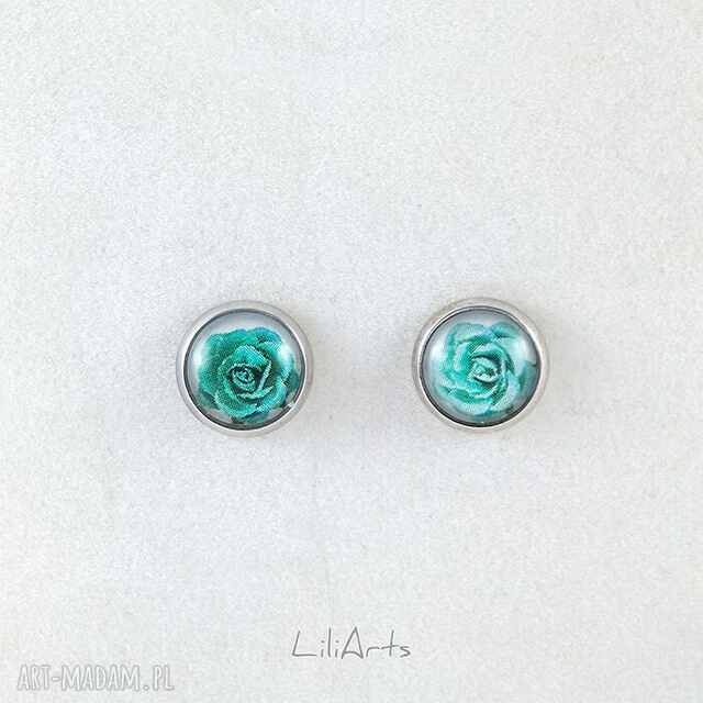 Kolczyki - Turkusowe różyczki - wkrętki, sztyfty, mini