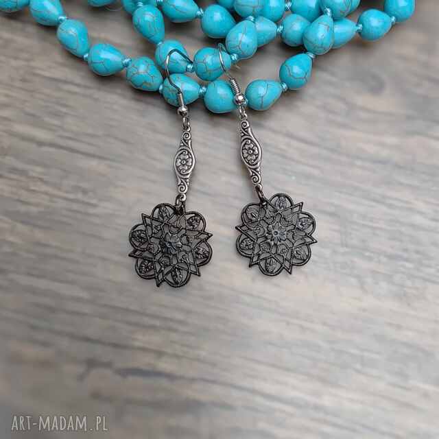 szybka wysyłkaKolczyki turkusowe koraliki kolczyk indyjskie klimaty2. Kolczyki długie z kroplami howlitu w kolorze turkusowym i szklanych koralików, howlit110,00 zł