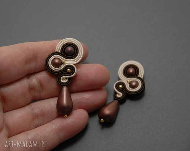 szybka wysyłkaBiałe kolczyki sutasz. Ozdobione fasetowanymi kaboszonami, długość samego haftu ok, 5,5 cm140,00 zł