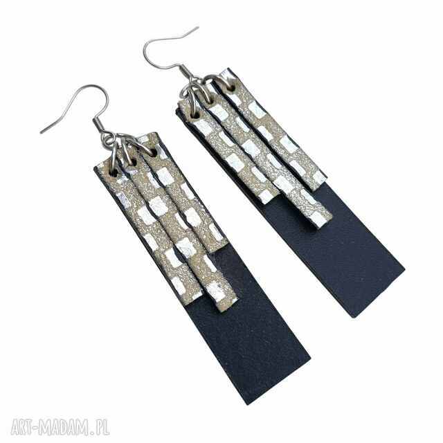 szybka wysyłkaKolczyki wiszące z naturalnej skóry, czarny i srebrne. Kolczyki kolczyko - skórzane Czarny i srebrny, Zakończone elementami ze stali chirurgicznej35,00 zł