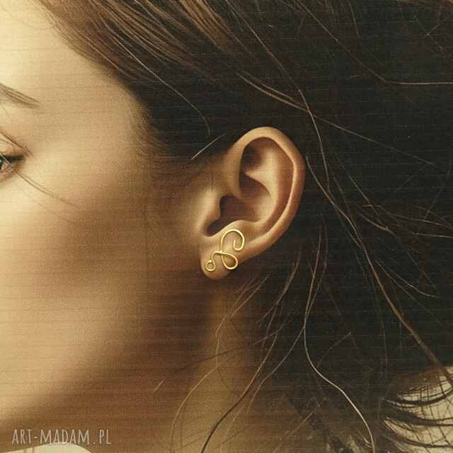 Srebrne, pozłacane 24-karatowym złotem, drobne kolczyki o nietuzinkowym autorskim wzorze, podkreślające kształt uszu. Delikatnie skręcające się esy-floresy są lekkie i oryginalne.