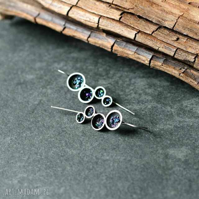 Srebrne kolczyki z nieregularną, srebrną perłą typu. Wiszące, unikatowe kolczyki wykonane z ręcznie profilowanego, tęczowy poblask, 23 mm, 5,5 cm559,00 zł