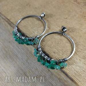 Kolczyki z chryzoprazu i chryzokoli. Kolczyki z bryłkami chryzoprazu 1,20,8 cm i kostkami chryzokoli 4 mm, 7 cm, srebro oksydowane229,00 zł