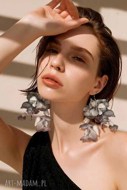 Kolczyki handmade - lekkie, długie, szare kwiaty 🌿