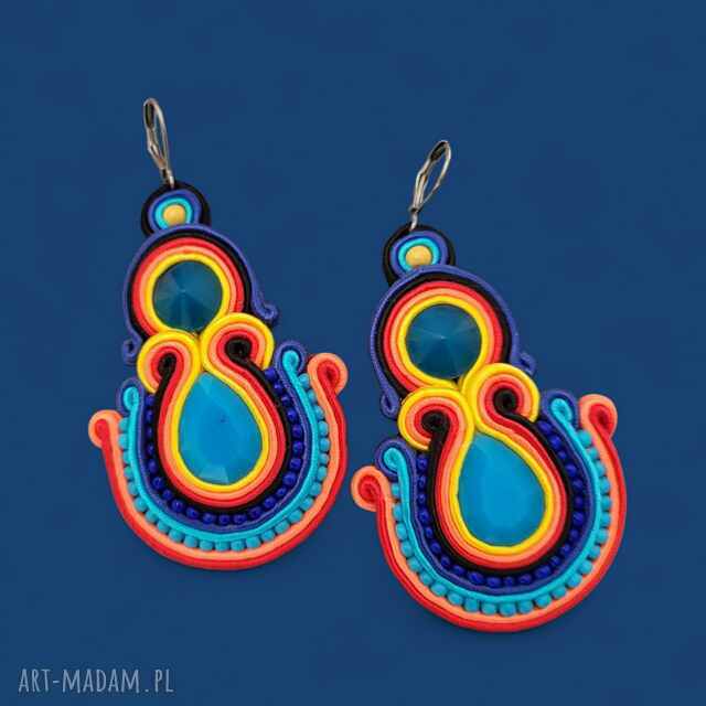 Kolczyki sutasz korfu. Lekkie, długie kolczyki wykonane pracochłonną techniką haftu sutasz, Kolorystyka, 7cm92,00 zł