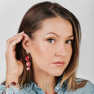 Te pełne blasku kolczyki są częścią kolekcji “W blasku perłowego księżyca”. Kolczyki wykonane są z ręcznie malowanych kaboszonów umieszczonych w bazach ze stali szlachetnej. Szklane elementy zachwycają subtelnym, opalizującym blaskiem, który jest niczym odbicie księżyca na tafli wody. Kolczyki mienią się w świetle, przyciągając wzrok i dodają elegancji każdej stylizacji. Ten dodatek jest idealny dla osób ceniących sobie wyrafinowaną i ponadczasową biżuterię.