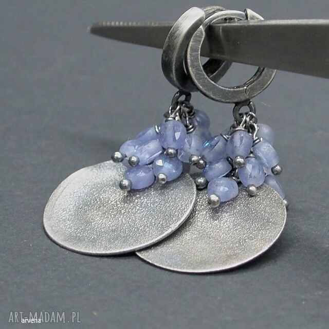 Kolczyki koła z zawieszkami- srebro, złoto, kryształ. Kolczyki swarovski Kolczyki koła wielkości 2,5cm wykonane ze srebra pr, 925- młotkowanego, przyciemnianego250,00 zł