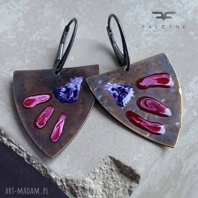 szybka wysyłkaKolczyki champagne & aubergine. Mosiądzu, kamieni i szkła, Kolczyki w nowoczesnej, nietuzinkowej formie, z mosiądzu, 8 mm229,00 zł
