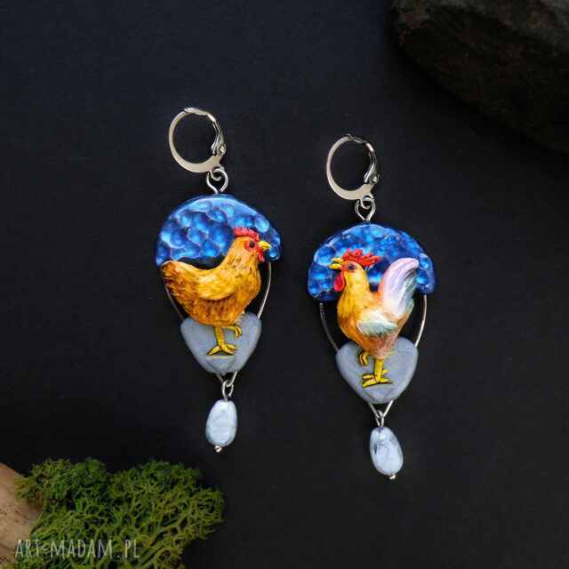 Jest w kurach i kogutach coś, obok czego trudno przejść obojętnie — duma gospodarza i wspomnienie sielskiego podwórka o poranku. Te kolczyki powstały z inspiracji właśnie takim klimatem: spokojem wsi, bliskością natury i urokiem codziennych, dobrze znanych obrazów. Ręcznie modelowane kuraki zamieniły się tutaj w małe opowieści o wiejskim życiu — trochę nostalgiczne, trochę przekorne, a przede wszystkim pełne charakteru.