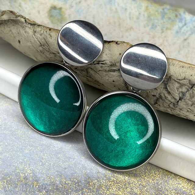 Te pełne blasku kolczyki są częścią kolekcji “W blasku perłowego księżyca”. Kolczyki wykonane są z ręcznie malowanych kaboszonów umieszczonych w bazach ze stali szlachetnej. Szklane elementy zachwycają subtelnym, opalizującym blaskiem, który jest niczym odbicie księżyca na tafli wody. Kolczyki mienią się w świetle, przyciągając wzrok i dodają elegancji każdej stylizacji. Ten dodatek jest idealny dla osób ceniących sobie wyrafinowaną i ponadczasową biżuterię.