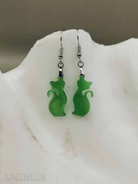 Kolczyki Zielony Kot - lekkie kolczyki z motywem kota