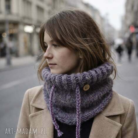 Kominokaptur fiolet. Kominokaptur na zimę świąteczny. Dzianinowy kominokapturfiolet, Skład: bawełna 95%, elastan 5%, Czas oczekiwania na wykonanie zamówienia ok 5159,00 zł