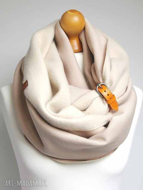 Ciepły, duży komin dresowy damski. Komin uszyty został z grubej dzianiny dresowej, jego wewnętrzna strona jest puszysta, 90 % bawełna. Szalik ten świetnie prezentuje się do casualowych i codziennych stylizacji, kolor beżowy będzie pasował do wielu stylizacji.