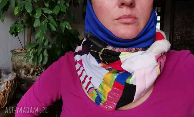 Komin wymiary 33cm. na37cm, uszyty z rożnych materiałow na podszewce, ciepły milutki wciągany przez głowę rozmiar uniwersalny, blisko szyi polecam box 11
