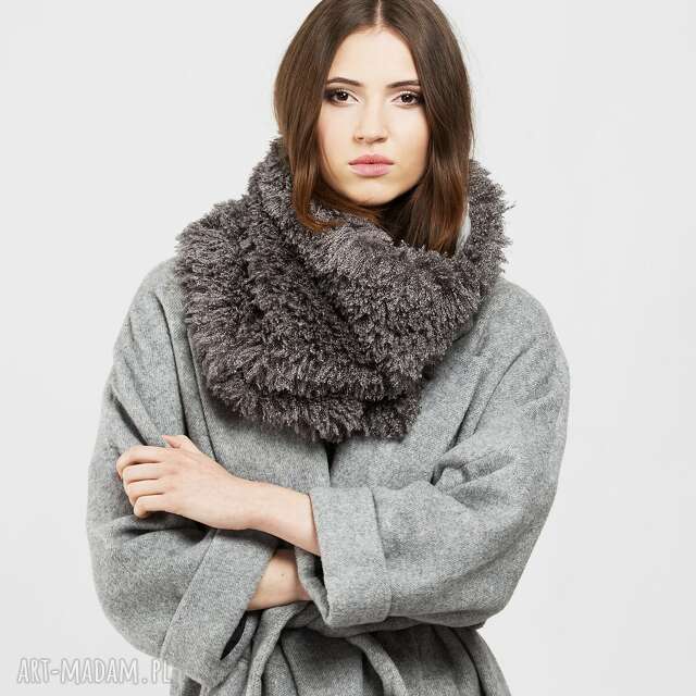 Minimalistyczny, duży i obszerny komin uszyty z grubej i miękkiej dzianiny dresowej oraz sztucznego futra. Idealny na jesienne i zimowe chłody - otula, ogrzewa, pasuje do większości stylizacji; wygląda bardzo oryginalnie i efektownie, świetnie nadaje się na prezent.