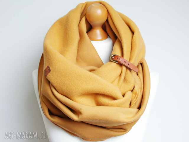 handmade zimowy komin dresowy damski z zapinką, modny komin na zimę, miodowy