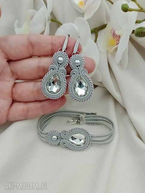 Srebrny zestaw biżuterii, srebrny komplet kryształowy, komplet soutache