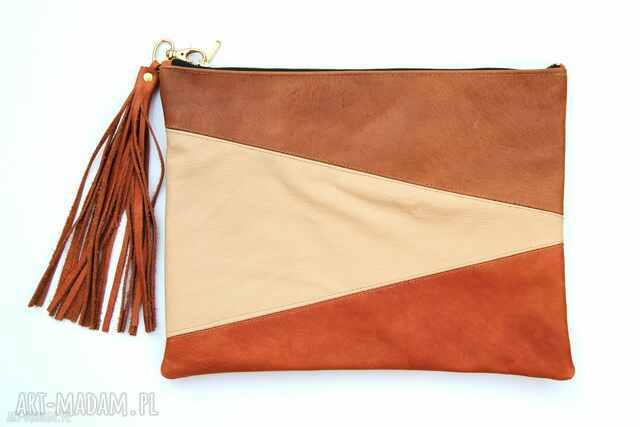 szybka wysyłkaKarmelowa torebka kopertówka brązowa toffee camel haftowana sutasz. Kolor - ciepły odcień brązu, camel, Torebka z zamszu alkantara, usztywniana, telefon, zieleni149,00 zł