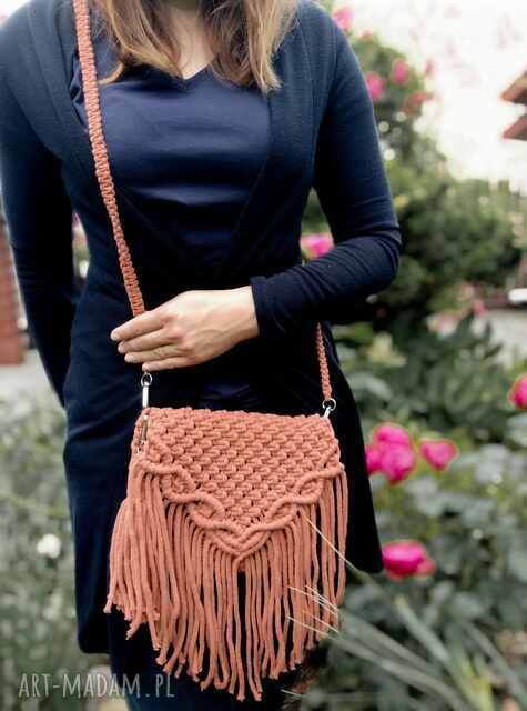 Torebka ręcznie robiona metodą macramy w kolorze miedzianym