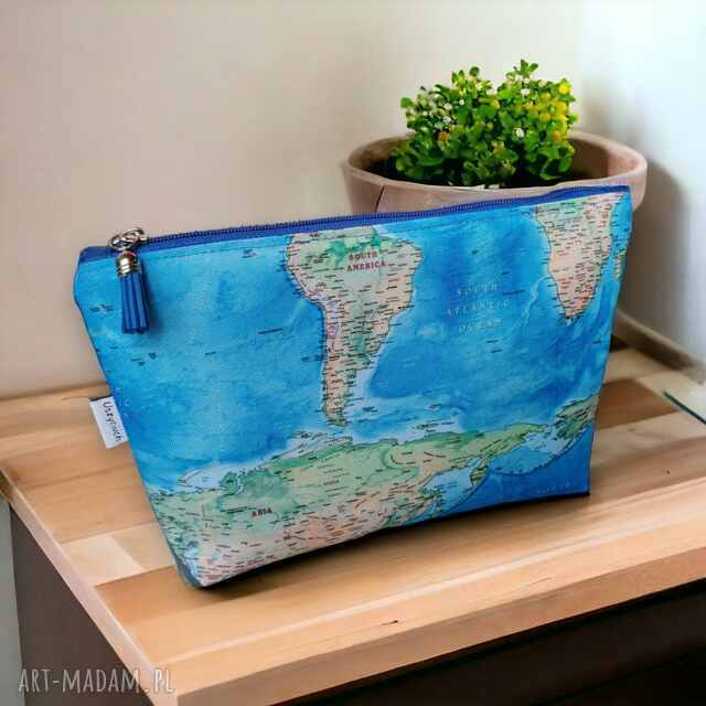 Kosmetyczka sprzedawana bez zawartości. Rozkład wzoru może różnić się od tego na zdjęciu. Każda sztuka kosmetyczki z tego wzoru ma inny rozkład mapy.