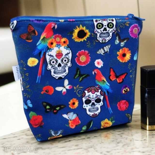 Kosmetyczka pin up girl, saszetka dziewczyna pin up, wodoodporna duża. Kosmetyczki handmade Kosmetyczka wodoodporna pin up, niebieski tył, Kosmetyczka nie jest usztywniona, Wymiary, 30ºC55,00 zł