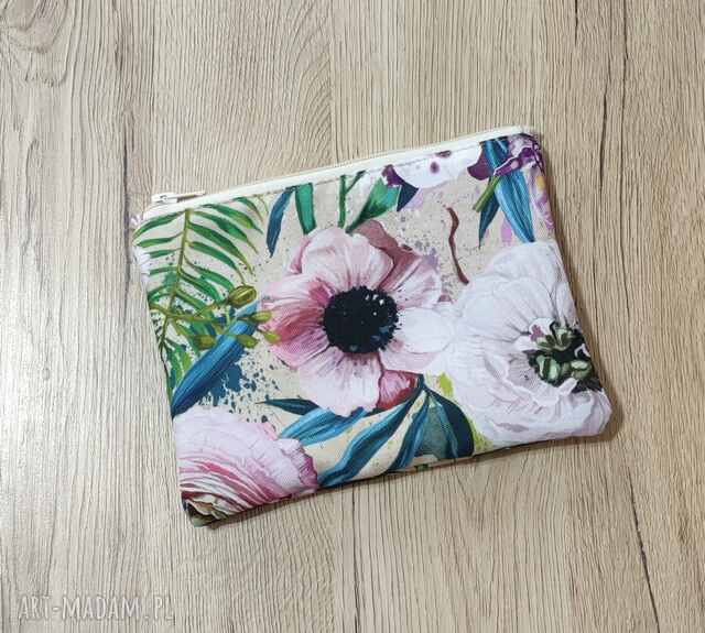 Duża kosmetyczka - kwiaty. Kosmetyczki handmade Kosmetyczka wykonana z wysokiej jakości tkaniny wodoodpornej w kwiaty, Wymiary, Zapinana na zamek70,00 zł