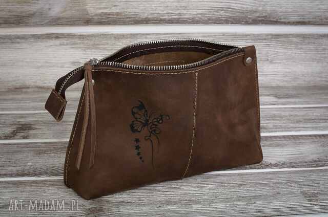 Pojemna damska skórzana kosmetyczka. Dzięki swoim rozmiarom świetnie sprawdzi się zarówno podczas podróży jak i na co dzień.