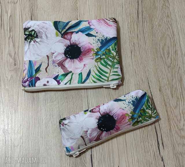 Piórnik i Kosmetyczka wykonane z najwyższej jakości tkaniny wodoodpornej w kwiaty.