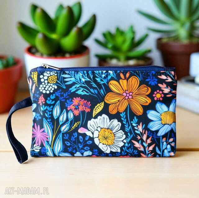 szybka wysyłkaKosmetyczka wodoodporna łąka na granacie. Kosmetyczki handmade Kosmetyczka uszyta jest z tkaniny wodoodpornej na dole pikowanej, W środku wodoodporna podszewka49,00 zł