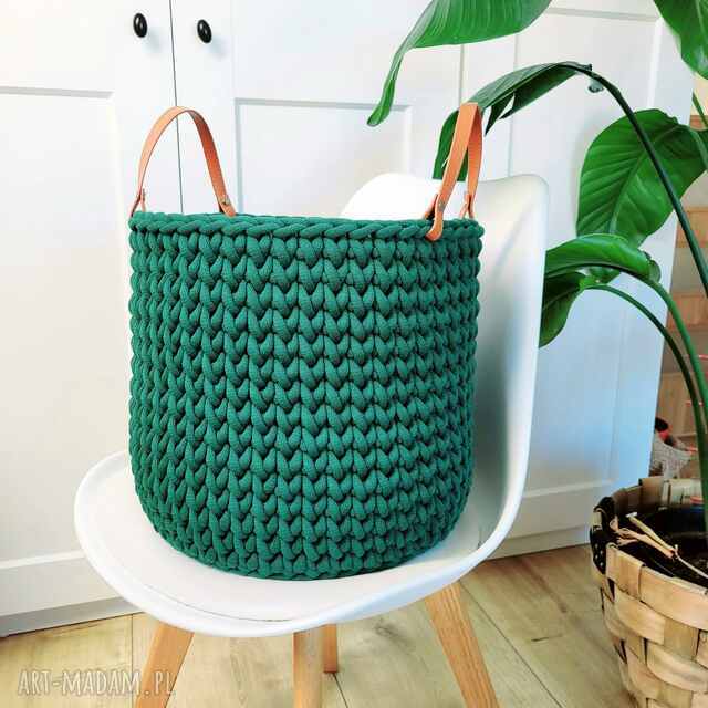 Kosz w przepięknym Kolorze leśnym wykonany jest na szydełku.