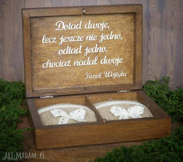 Pudełko na obrączki - żona & mąż. Wieczko zdobią elementy wycinane, inicjały lub datę ślubu Pary Młodej89,00 zł