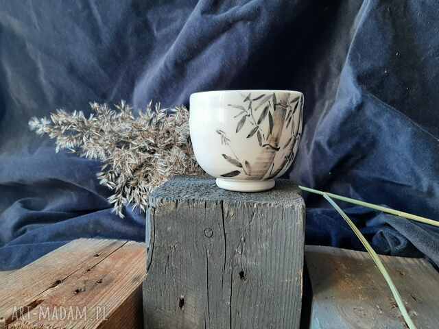 Czarka - bambusy - porcelanowa czarka do herbaty lub sake. Porcelana toczona na kole garncarskim, ręcznie malowana swobodnym pędzlem w stylu japońskim. Pojemność (mierzona ok 1 cm poniżej krawędzi) 140 ml. Porcelana, wypał wysokotemperaturowy.