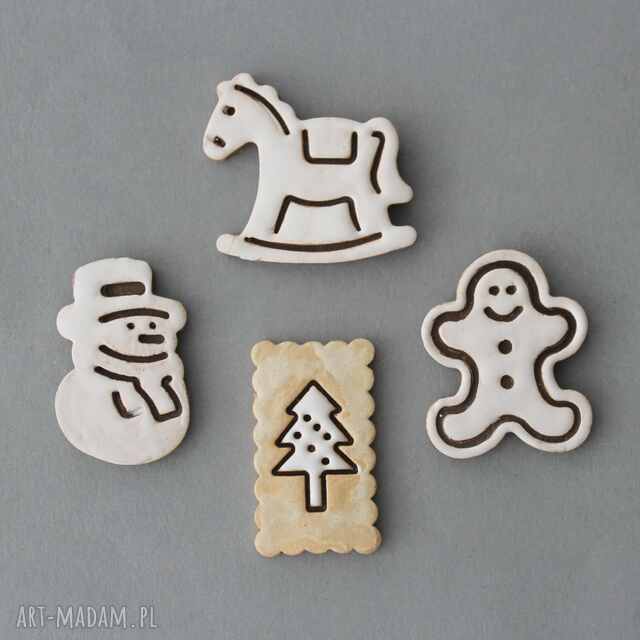 Komplet 4 świątecznych magnesów ZIMA w w odcieniach bieli, beżu i brązu. Idealne jako dodatek do prezentu na święta lub kolekcjonera magnesów. Szkliwione z jednej strony. Kolory na zdjęciach mogą się różnić, ze względów na ustawienia parametrów monitora.