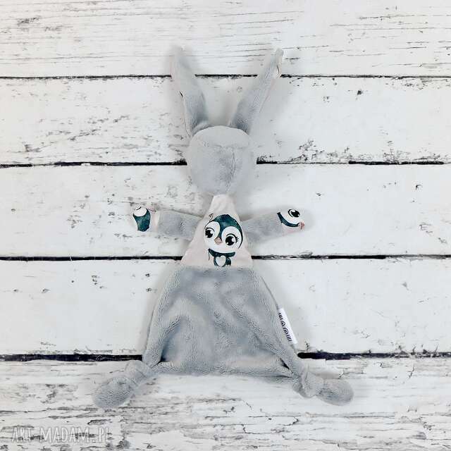 handmade luluś królik - dla niemowląt pingwinki róż - szare