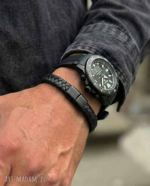 Klasyczna pleciona bransoletka męska wykonana ręcznie z naturalnej skóry i stali nierdzewnej.