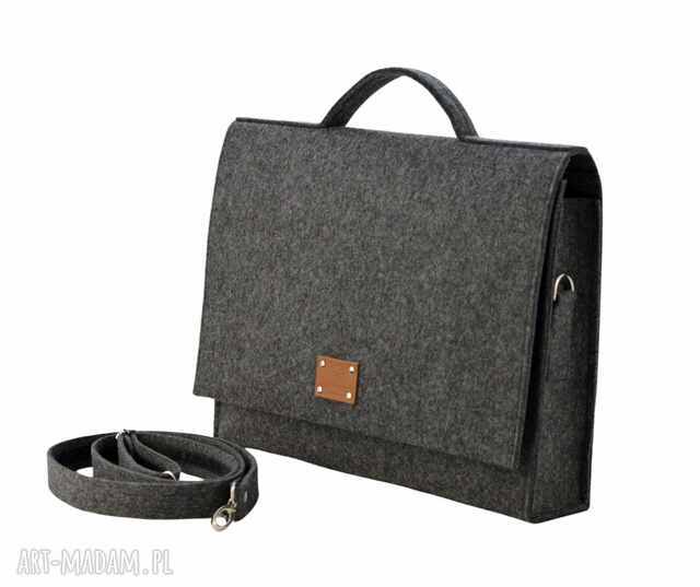 handmade duża torba na laptopa 15'6" - teczka grafit
