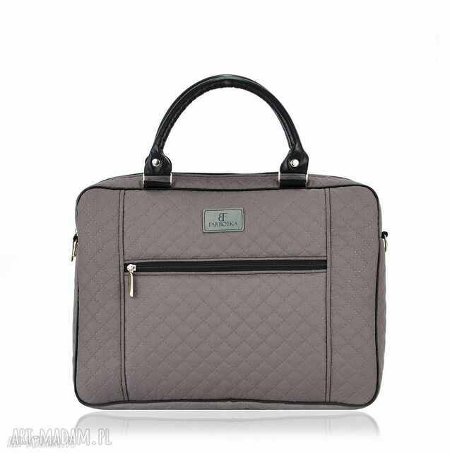 Torba wykonana jest z wodoodpornego materiału w kolorze choco. Tworząc tę torbę projektantka postawiła w nim na trwałość co gwarantują solidne, skórzane rączki. Pomysłowe rozwiązania sprawiają, że torba jest uniwersalna pod względem zastosowań - pomieści wiele rzeczy tj. dokumenty czy podręczny komputer (max. 15,6"). Torba ma jeden regulowany i odpinany skórzany pasek do noszenia przez ramię oraz dwie małe skórzane rączki. O jakości torby świadczy również wykończenie wnętrza torby pikowaną podszewką. Dla ułatwienia organizacji przestrzeni wewnątrz torby została stworzona kieszeń na drobiazgi zapinana na zamek, kieszeń bez zamka oraz kieszonka na telefon. Zewnątrz posiada jedną kieszonką zapinaną na zamek. Każda oryginalna torebka Farbotka ma logo w środku.