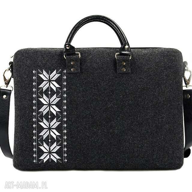 Główną ozdobą prezentowanej torebki z grafitowego filcu jest srebrny haft Romby, autorski wzór marki Farbotka. Tworząc tę torbę projektanka postawiła w nim na trwałość - gwarantuje ją gruby, wytrzymały filc oraz solidne, skórzane rączki. Pomysłowe rozwiązania sprawiają, że torba Romby jest uniwersalna pod względem zastosowań - pomieści wiele rzeczy tj. dokumenty czy podręczny komputer (max. 16"). Torba ma jeden regulowany i odpinany skórzany pasek do noszenia przez ramię oraz dwie małe skórzane rączki. O jakości torebki świadczy również wykończenie wnętrza torby pikowaną podszewką. Dla ułatwienia organizacji przestrzeni wewnątrz torby została stworzona kieszeń na drobiazgi zapinana na zamek, kieszeń bez zamka oraz kieszonka na telefon. Każda oryginalna torebka Farbotka ma logo w środku.