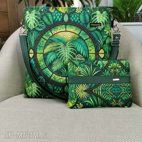 Torebka damska shopperka z kosmetyczką torebka miejska na ramę - Całość zamykana na zamek, Wewnątrz gładka podszewka wodoodporna w kolorze jasno zielonym, dwie pojemne kieszenie, na zamek i wsuwana179,00 zł