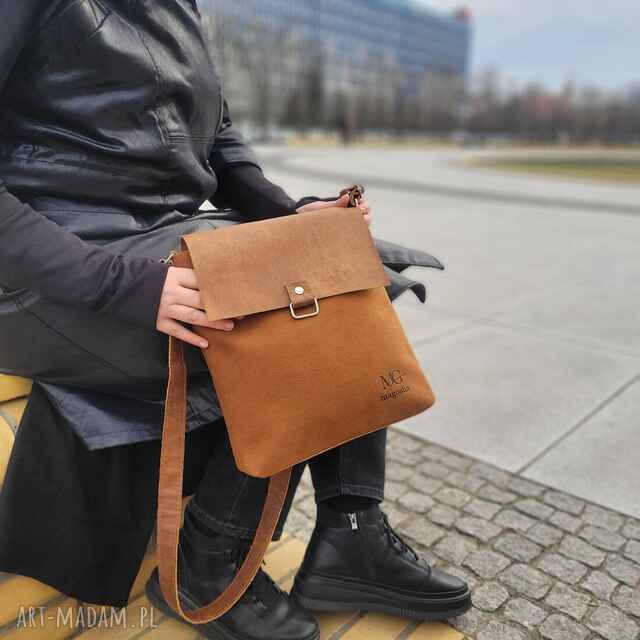 handmade listonoszka z klapką ada kolor rudy na ramię