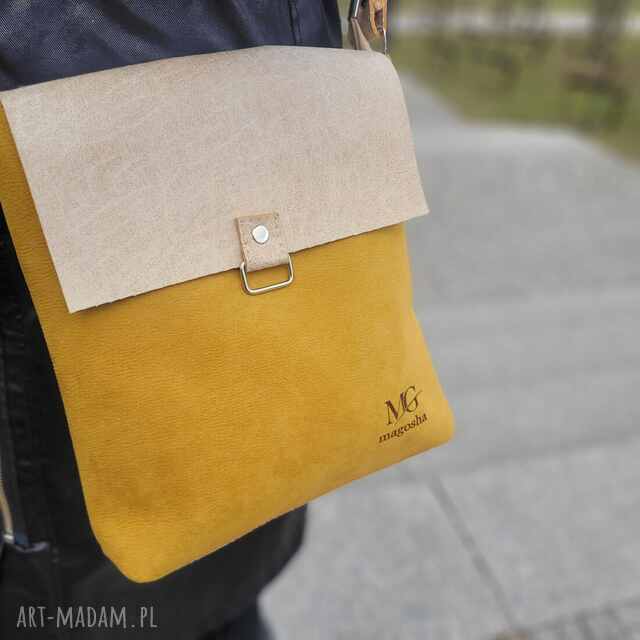 handmade listonoszka z klapką ada kolor miodowy na ramię