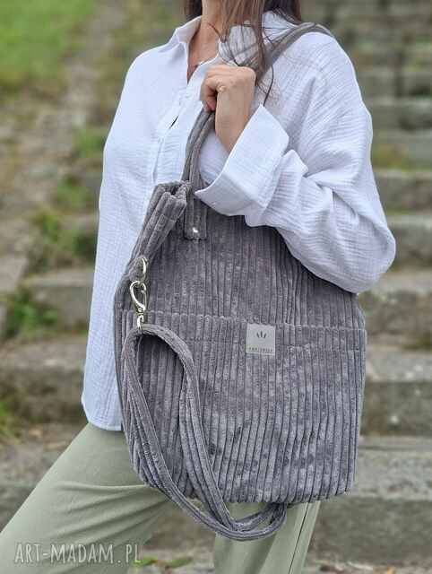 handmade sztruksowa torebka z kieszeniami szara na ramię