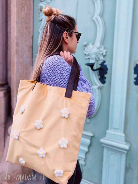 ręcznie zrobione torba mr. M flower yellow/uszy skóra naturalna