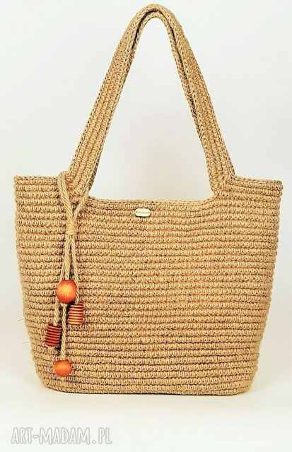 Torba shopperka wykonana na szydełku z ekologicznego szpagatu jutowego oraz linki jutowej w kolorze zgaszonego beżu. Dno produktu w kształcie owalu zostało usztywnione, dzięki temu torba nie straci swej formy podczas użytkowania.