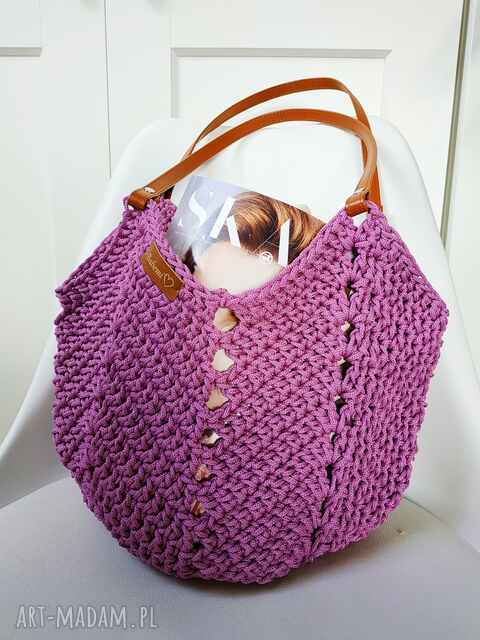 Pojemna torba wykonana z lekkiego 3mm sznurka poliestrowego w kolorze brudnego różu świetnie sprawdzi się na jesienne dni.