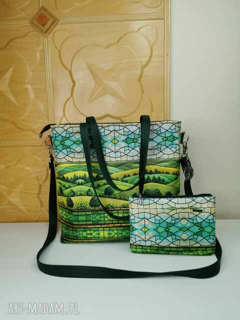 Torebka damska shopperka z kosmetyczką torebka miejska na ramę - pejzaż
